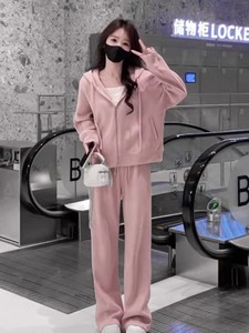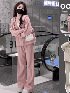 跨境大码女装2025秋季洋气休闲两件套遮肉显瘦卫衣运动套装女胖mm
