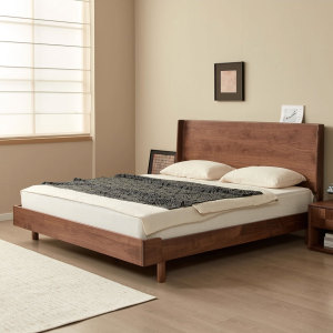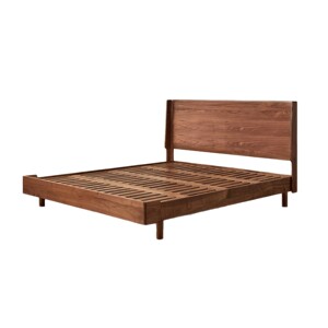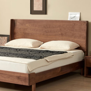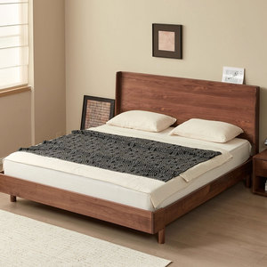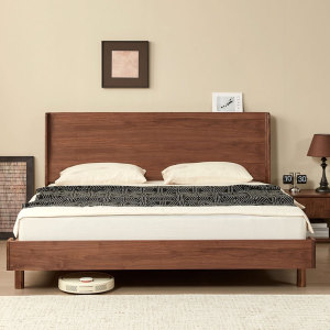 北美黑胡桃木比翼床现代简约原木小户型主卧双人床北欧实木悬浮床