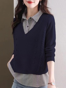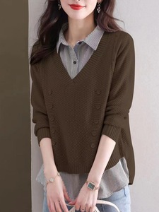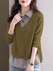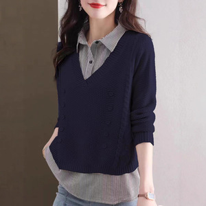 假两件针织衫女秋装新款百搭小众洋气宽松内搭上衣衬衫领套头毛衣