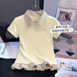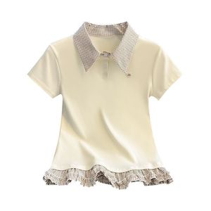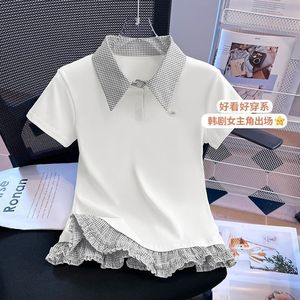 大码学院风格子拼接短袖T恤女夏季2025年新款宽松显瘦收腰上衣女