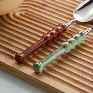 轻奢风304不锈钢亚克力手柄餐刀叉勺酒店法式餐厅高颜值甜品勺叉