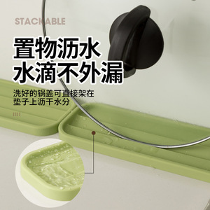多功能硅胶锅盖收纳垫厨房沥水防滑垫台面菜板隔热垫灶台放置垫子