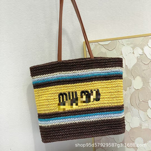新款miu家高品质沙滩托特包草编沙滩包刺绣包大容量单肩手提包