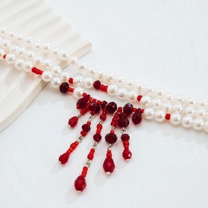欧美万圣节红色水晶流苏滴血珍珠项链个性甜酷暗黑爱心多层锁骨链