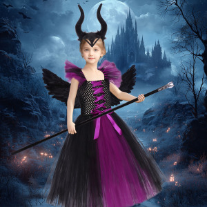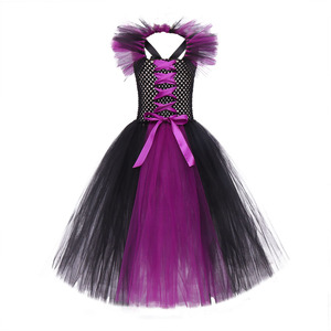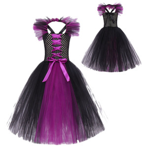 沉睡魔咒派对表演女童长裙女巫网纱蓬蓬裙cos万圣节儿童演出服装