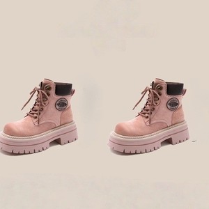 马丁靴女2025春秋季内增高粉色小个子英伦风短靴