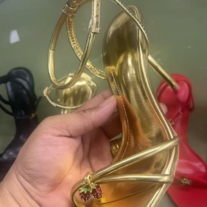 2025夏季新款露趾水钻草莓吊坠高跟一字带凉鞋细跟大码欧美女鞋