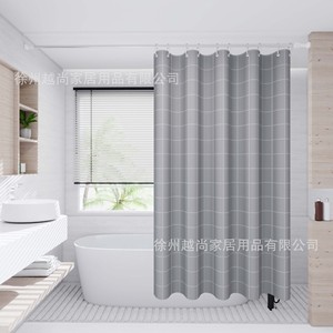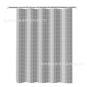 厂家直供灰方格浴帘浴室门帘防水防霉帘厕所免打孔伸缩杆隔断窗帘