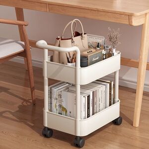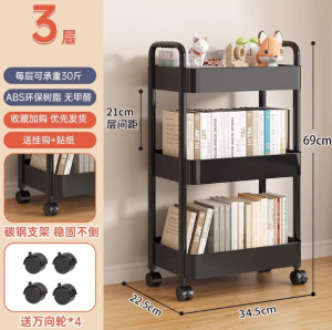 桌下书架落地置物架可移动小推车办公室放包零食收纳带轮桌面书柜