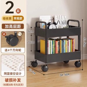 【移动轻】2层-黑.(双扶手+万向轮)★