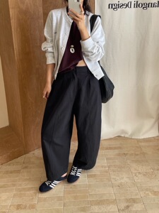 2025早秋休闲弯刀裤女显瘦梨形遮肉不显胯宽松阔腿裤九分裤ZA