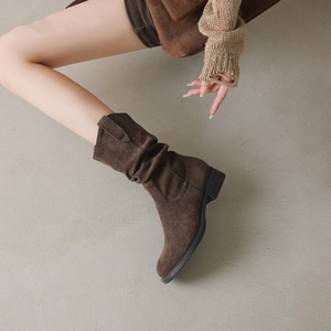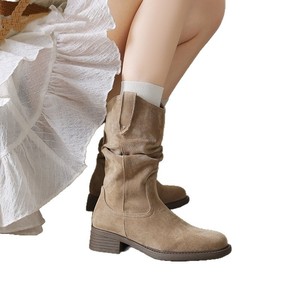堆堆靴子女2025年秋季新款复古美拉德西部牛仔短靴粗跟中筒马丁靴