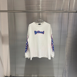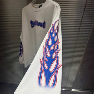 小众潮牌蓝色火焰logo印花美式休闲宽松男女情侣款长袖T恤