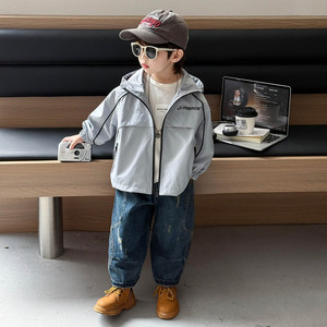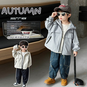 男童秋装卡绳冲锋衣外套春秋季韩版儿童帅气潮款风衣中小童上衣