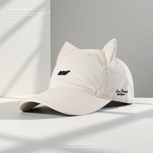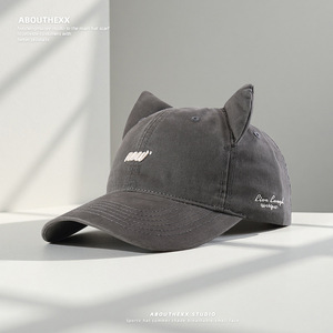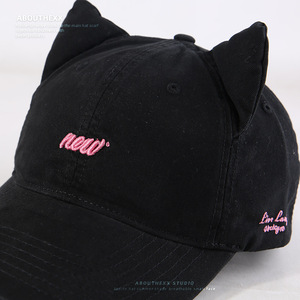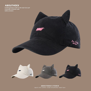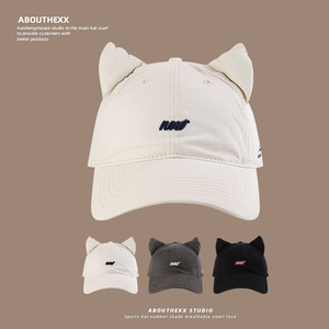 日系小众设计猫耳朵帽子女潮牌嘻哈街头棒球帽男显脸小遮阳鸭舌帽