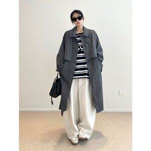 南鱼 知识分子风复古vintage立领纸感水洗廓形长款风衣外套女秋款