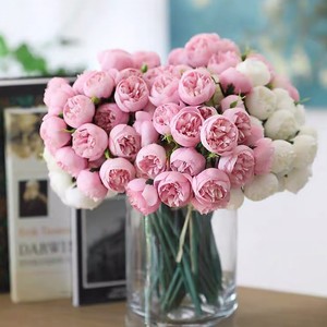 27头茶玫手扎花小牡丹花束塑料花欧式婚礼家居摆设装饰仿真花假花