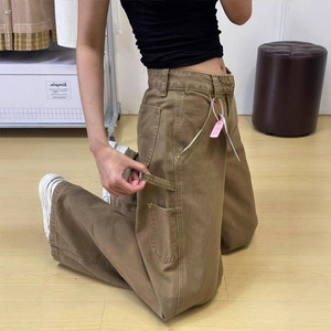 废土风显瘦工装长裤女装新款辣妹宽松遮肉百搭简约直筒牛仔裤ins
