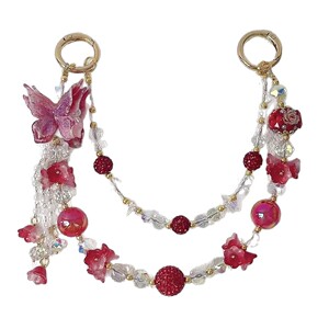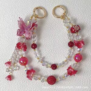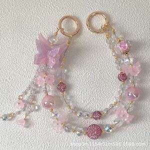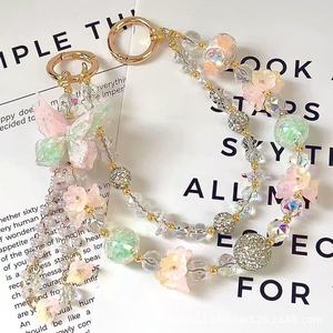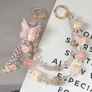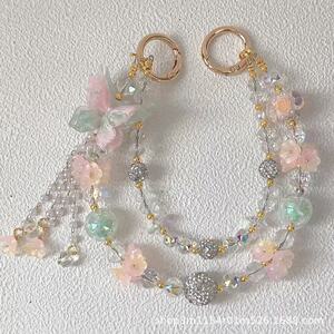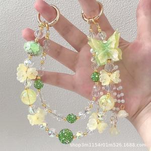 高级感轻奢粉嫩流苏蝴蝶手机链钥匙扣包包挂链铃兰花清新手机挂饰