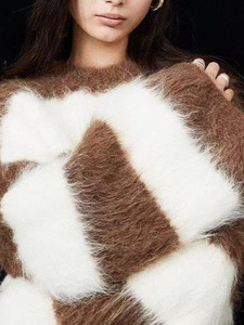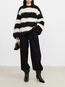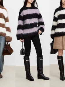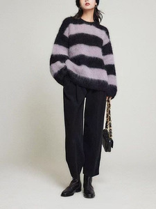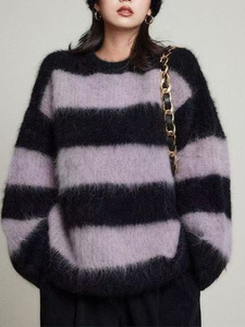 软糯奶fufu紫色条纹水貂绒圆领毛衣女秋款加厚慵懒风短款针织上衣