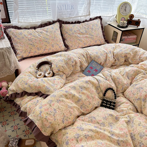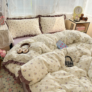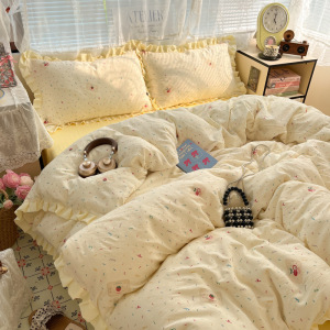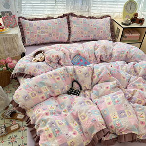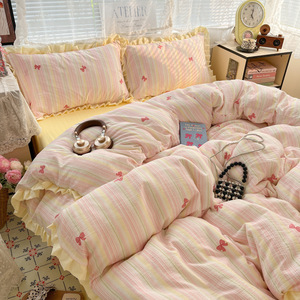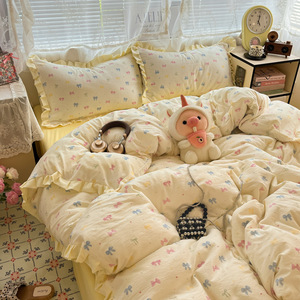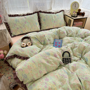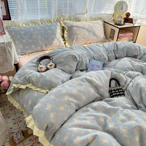 2025新款双层纱花边款四件套ins小清新学生宿舍被套床单三件套
