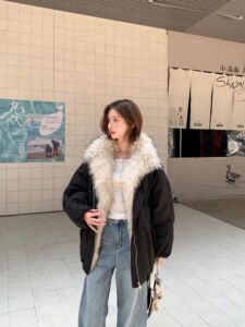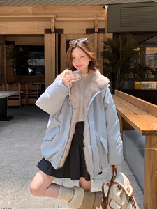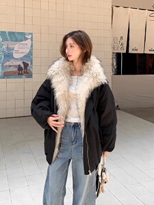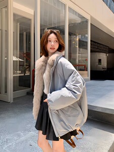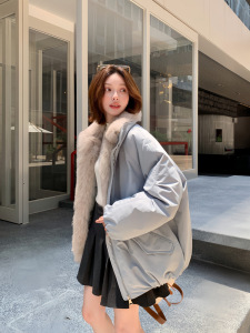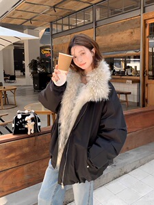 2025冬巴恩风羽绒服女90白鸭绒加厚花苞茧型皮草派克服大毛领外套