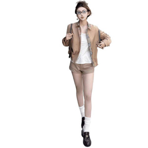 早春复古东京日落卡其色外套格子风衣夹克短款外穿上衣春秋款