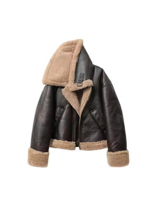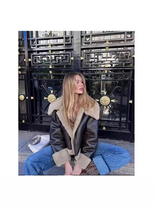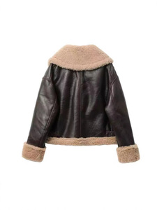2025年冬季新款法式通勤风大翻领皮毛一体夹克PU皮衣外套保暖夹克