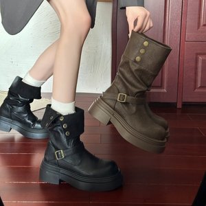 英伦风马丁靴女款2025新款秋复古女鞋美拉德棕色靴子厚底黑色短靴
