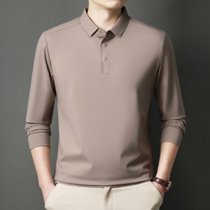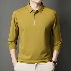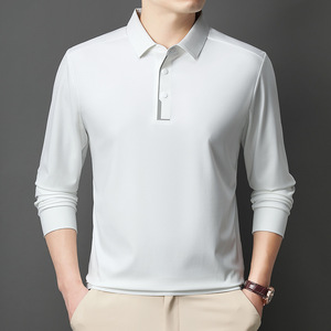 跨境锦氨无痕7A抗菌长袖T恤男2025秋季纯色商务翻领男士polo衫