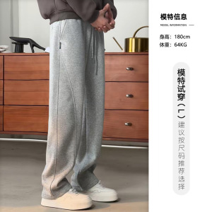 运动卫裤男士2025春秋宽松香蕉裤阔腿百搭弯刀裤直筒休闲裤