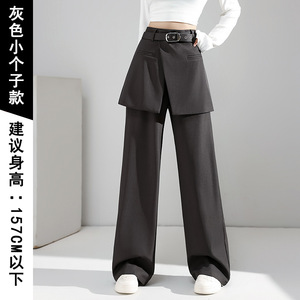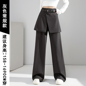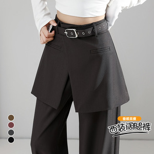 秋季假两件黑色阔腿西装裤女新款设计感显瘦屁帘裙裤直筒休闲裤子