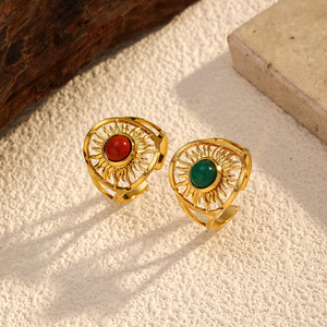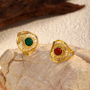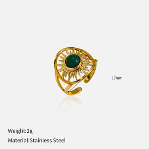 欧美跨境复古个性不锈钢戒指太阳镂空戒指电镀18K金开口百搭指环