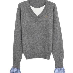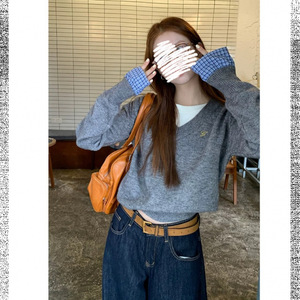 V领套头毛衣女秋冬新款气质百搭宽松显瘦长袖针织上衣内搭女秋冬
