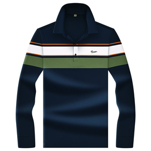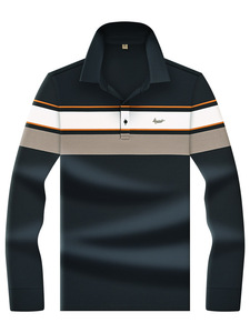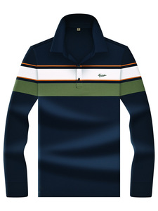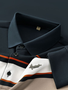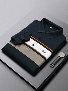 秋季新款新定位菠萝花色织条纹翻领撞色系男士长袖POLO衫商务体恤