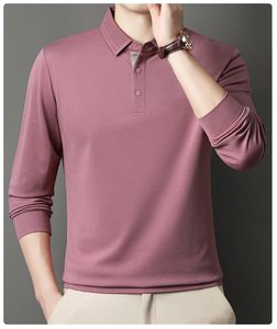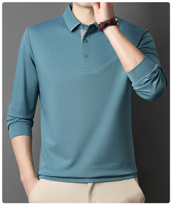 绵羊毛+桑蚕丝男士长袖顺滑面料T恤简约百搭polo衫春秋季翻领中年