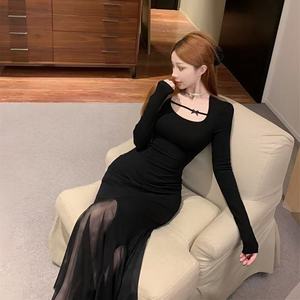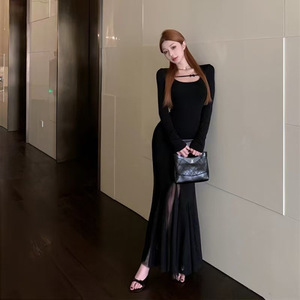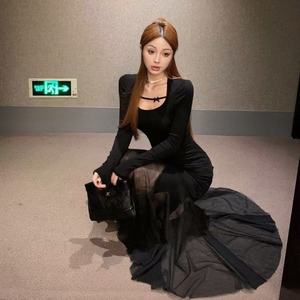 乱世佳人鱼尾裙秋季修身显瘦包臀法式设计感绝美网纱连衣裙长裙