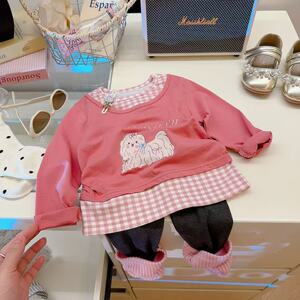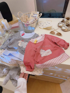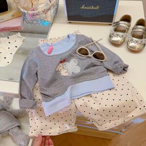 2025女童春秋季新款假两件T恤新款卡通印花可爱上衣秋款潮t批发