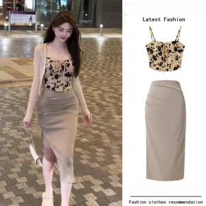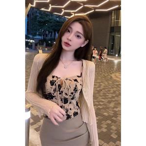 早秋小香风气质针织开衫外套女开叉半身裙两件套时尚吊带三件套装