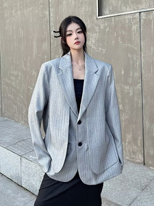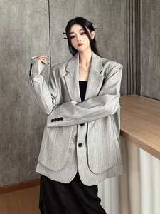 假两件廓形高级感西装外套女2025年春季宽松质感中性垫肩西服上衣