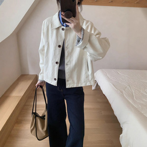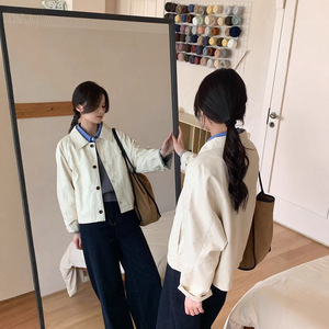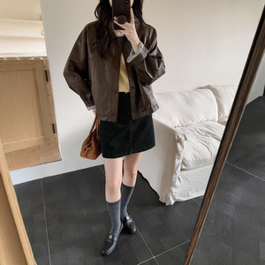 秋季复古高级感圆领皮衣外套宽松休闲夹克小个子短上衣女