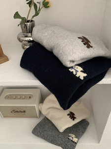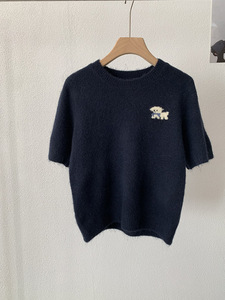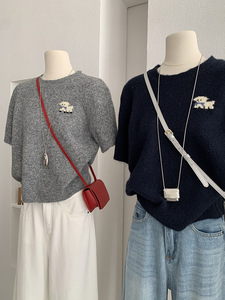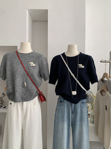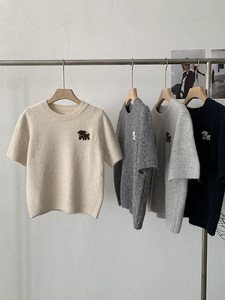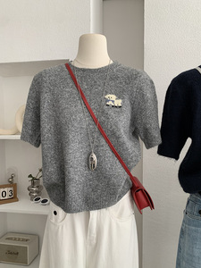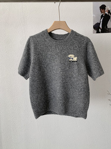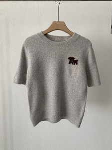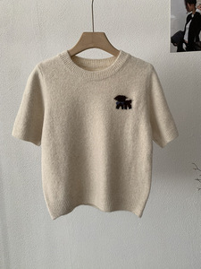 欧玛莱 2025秋季简约气质百搭小狗图案圆领短袖针织衫上衣女 4460