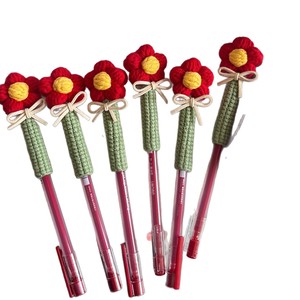 教师节礼物送女老师专用批改作业红笔2025新款钩织小红花实用礼品