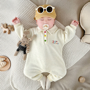 婴儿衣服外出春秋装连体衣男女宝宝翻领休闲哈衣新生儿爬服秋洋气