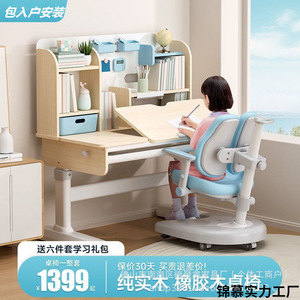 儿童学习桌小学生书桌可升降桌子实木写字桌家用课桌椅美嘉思套装