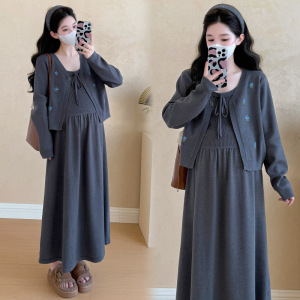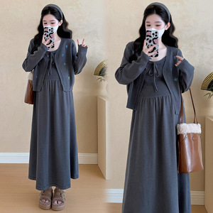 孕妇装秋冬季套装2025新款针织毛衣连衣裙两件套裙子孕妈高级穿搭