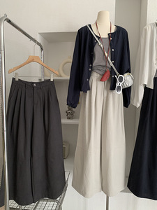 欧玛莱 韩版时尚百搭宽松显瘦直筒阔腿休闲拼接长裤2025秋季 4450