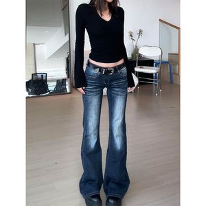 美式低腰微喇牛仔裤女秋季2025年新款修身简约风复古马蹄喇叭裤子