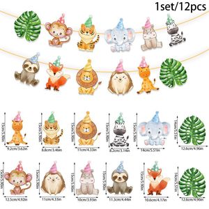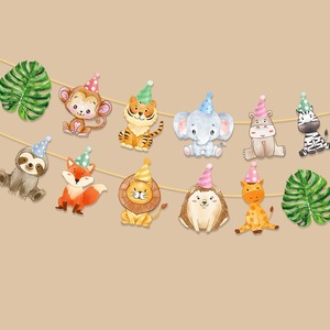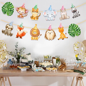 纸质丛林野生动物拉旗横幅儿童生日装饰品派对剪纸卡通