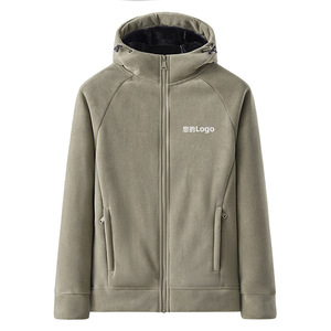 定制加厚双面摇粒绒外套男2025新款纯色宽松连帽保暖立领开衫夹克